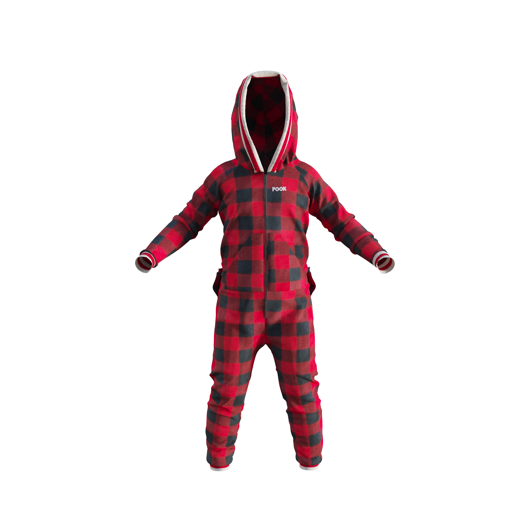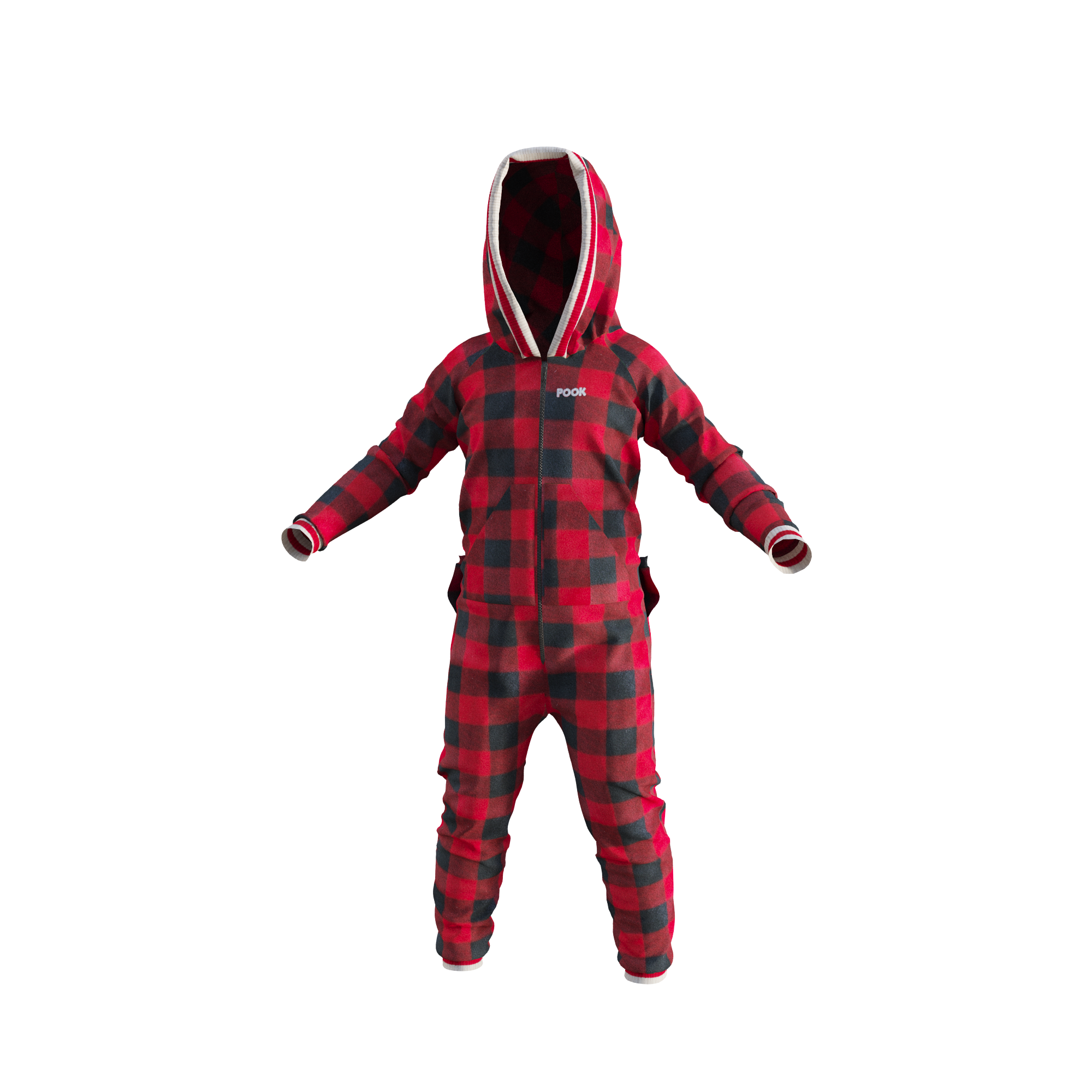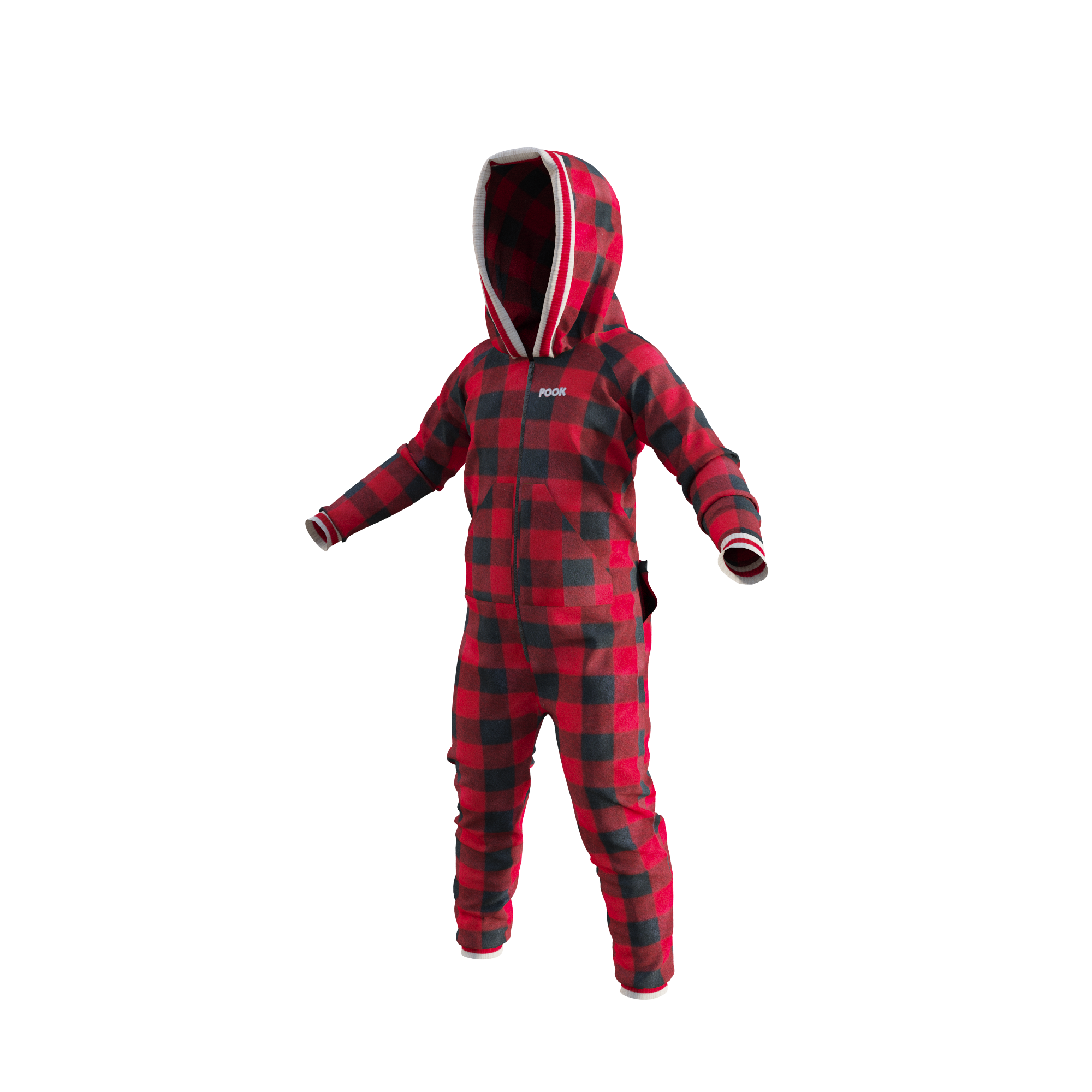 The Pook Onesie is more than pajamas. It's a lifestyle with 100% polar red plaid fleece, an embroidered logo, and form fitted ribbed ankle & wrist cuffs for ultimate comfort.